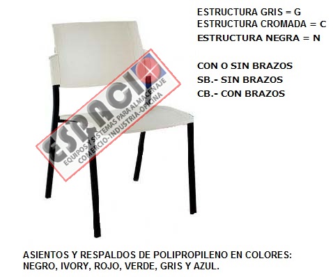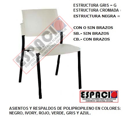 DE PLASTICO, FIJA CON BRAZOS ESTRUCTURA GRIS, SILLA ASIENTO RESPALDO EN POL...